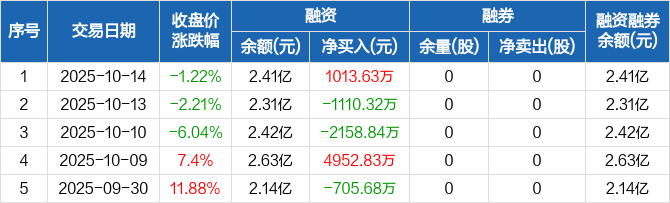恒烁股份:融资净买入1013.63万元,融资余额2.41亿元(10-14)