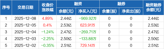 恒烁股份:融资净偿还969.92万元,融资余额2.44亿元(12-08)