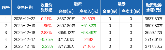美腾科技:融资净买入29.59万元,融资余额3637.39万元(12-22)