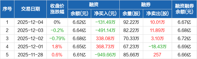 铁建重工:融资净偿还131.49万元,融资余额6.62亿元(12-04)