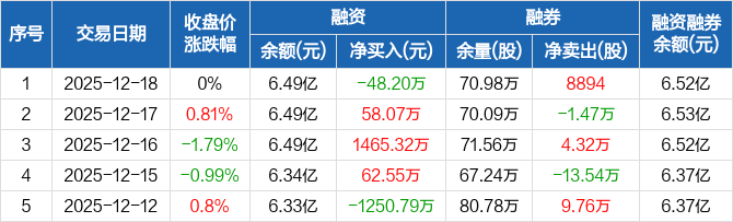 铁建重工:融资净偿还48.2万元,融资余额6.49亿元(12-18)
