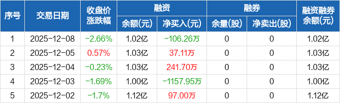 康为世纪:融资净偿还106.26万元,融资余额1.02亿元(12-08)