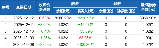 康为世纪:连续3日融资净偿还累计1297.12万元(12-12)