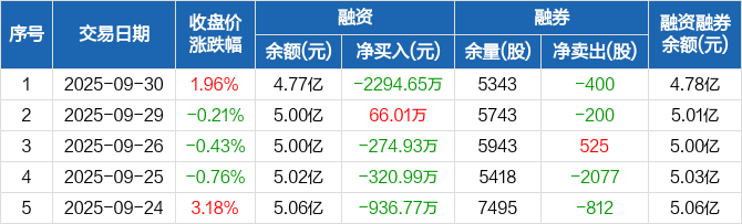 振华风光:融资净偿还2294.65万元,融资余额4.77亿元(09-30)