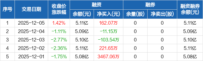 联芸科技:融资余额5.11亿元,创历史新高(12-05)