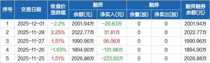 光格科技:融资净偿还20.83万元,融资余额2001.94万元(12-01)