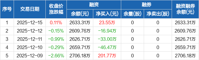 光格科技:融资净买入23.55万元,融资余额2633.31万元(12-15)