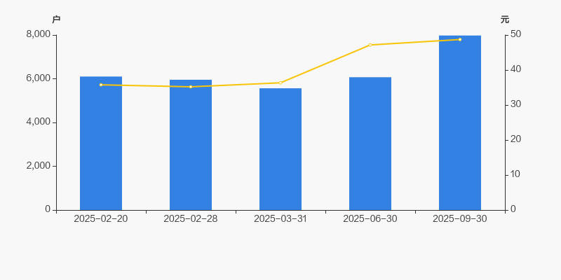 2025年2月20日至今,公司股东户数显著增长,区间涨幅为30.75%。2025年2月20日至2025年9月30日区间股价上涨36.18%。