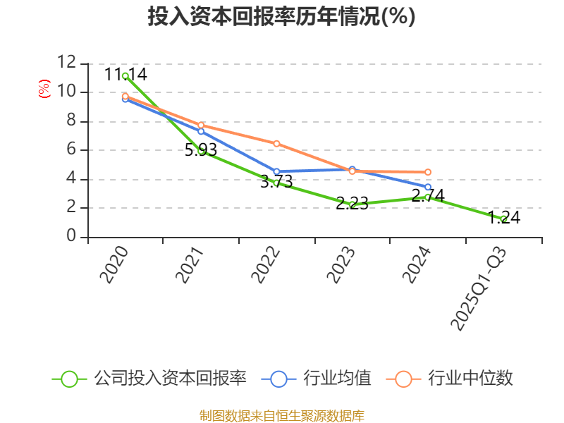 盈利能力方面, 2025年前三季度公司加权平均净资产收益率为1.66%,同比上升0.15个百分点。公司2025年前三季度投入资本回报率为1.24%,较上年同期上升0.5个百分点。