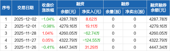 金科环境:融资净买入8.62万元,融资余额4287.78万元(12-02)