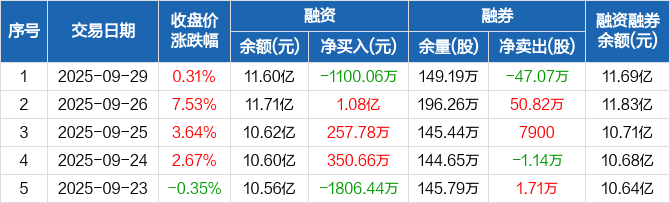 芯联集成:融资净偿还1100.06万元,融资余额11.6亿元(09-29)
