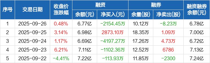阿特斯:融资净偿还2154.45万元,融资余额6.77亿元(09-26)