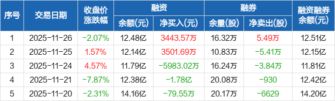 阿特斯:融资净买入3443.57万元,融资余额12.48亿元(11-26)