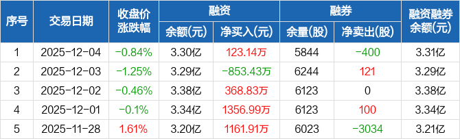 南芯科技:融资净买入123.14万元,融资余额3.3亿元(12-04)
