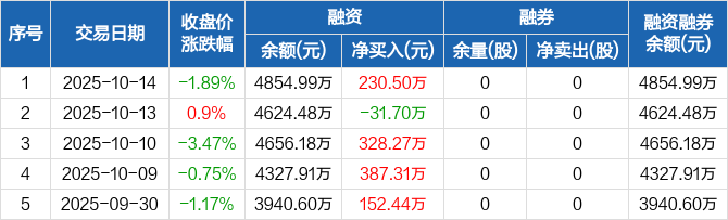 清越科技:融资净买入230.5万元,融资余额4854.99万元(10-14)