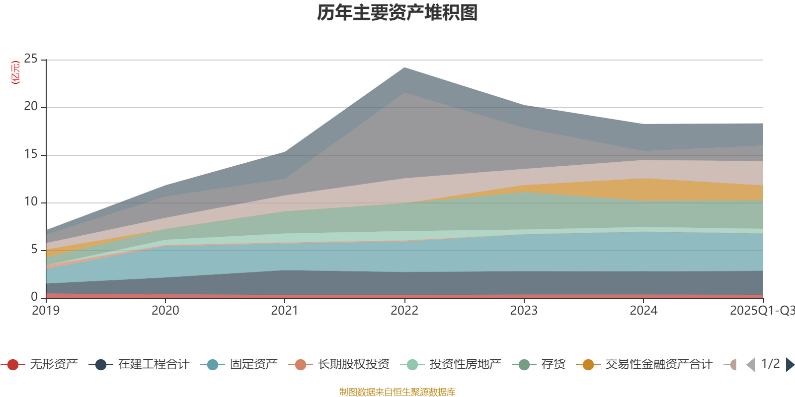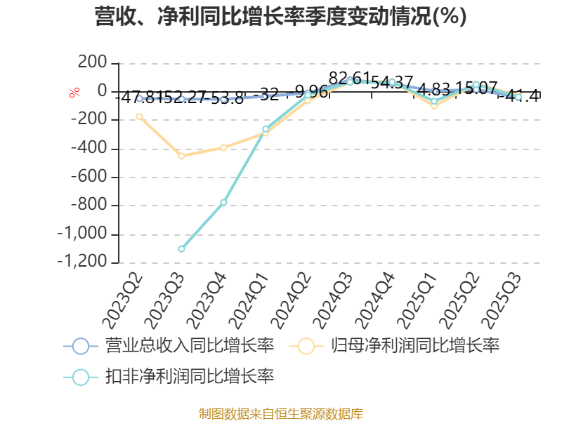 资产重大变化方面,截至2025年三季度末,公司交易性金融资产合计较上年末减少32.88%,占公司总资产比重下降4.3个百分点;货币资金较上年末增加75.42%,占公司总资产比重上升3.84个百分点;应收票据及应收账款较上年末增加32.63%,占公司总资产比重上升3.38个百分点;应收款项融资较上年末减少94.55%,占公司总资产比重下降2.38个百分点。