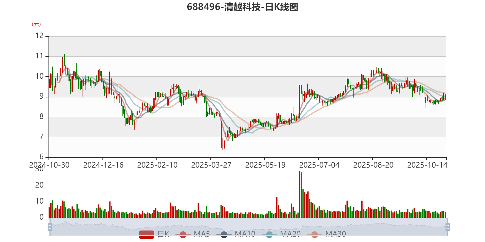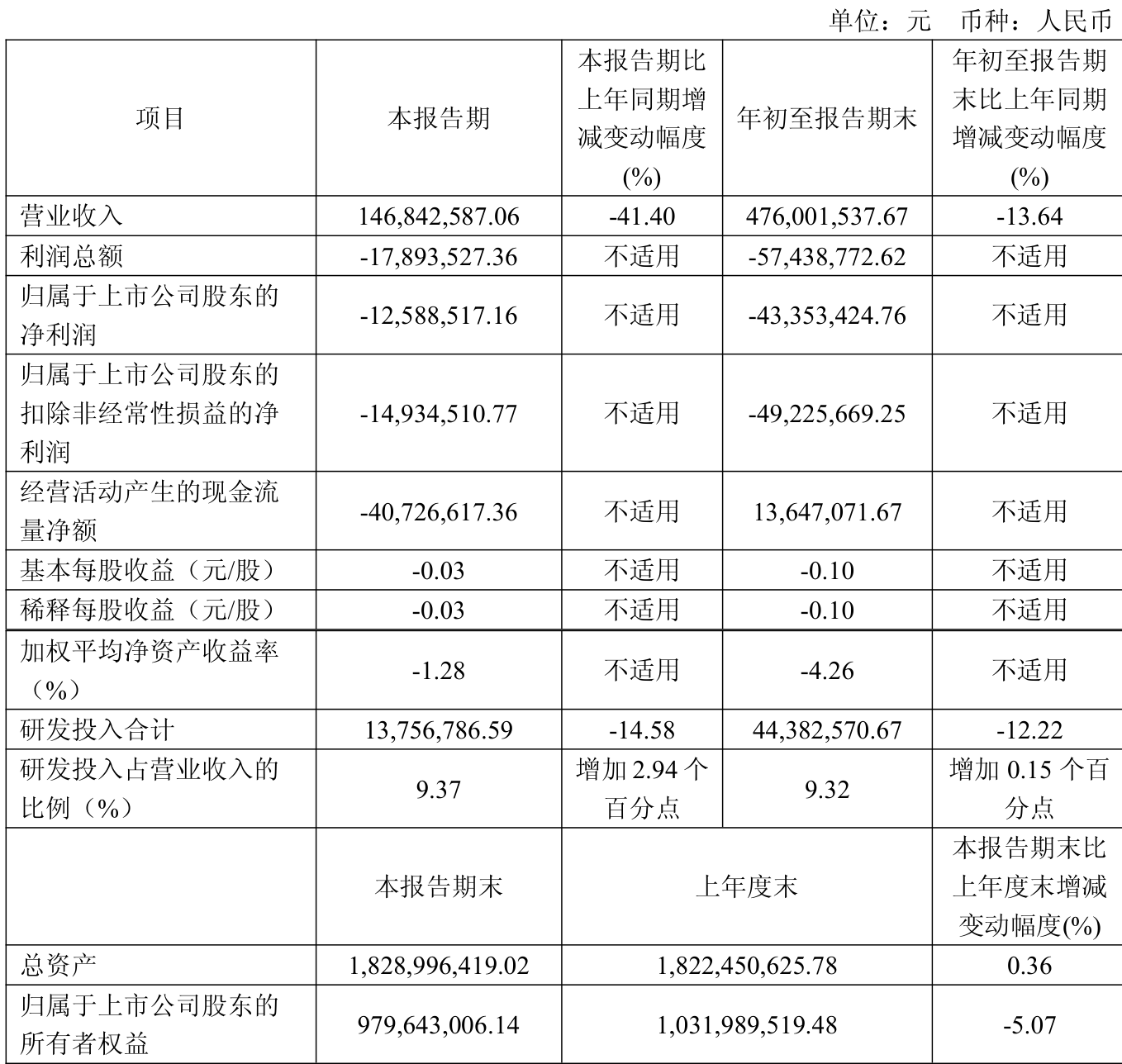 中证智能财讯清越科技(688496)10月30日披露2025年第三季度报告。前三季度公司实现营业总收入4.76亿元,同比下降13.64%;归母净利润亏损4335.34万元,上年同期亏损4887.5万元;扣非净利润亏损4922.57万元,上年同期亏损5456.24万元;经营活动产生的现金流量净额为1364.71万元,上年同期为-3625.88万元;报告期内,清越科技基本每股收益为-0.1元,加权平均净资产收益率为-4.26%。