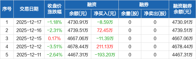 清越科技:融资净偿还8.59万元,融资余额4730.91万元(12-17)