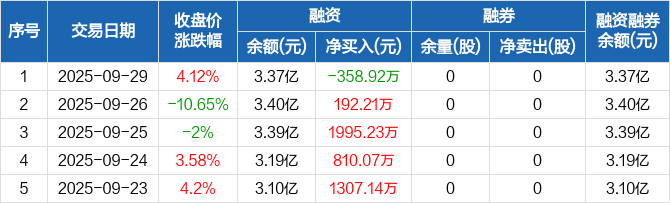 慧辰股份:融资净偿还358.92万元,融资余额3.37亿元(09-29)