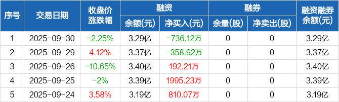 慧辰股份:融资净偿还736.12万元,融资余额3.29亿元(09-30)