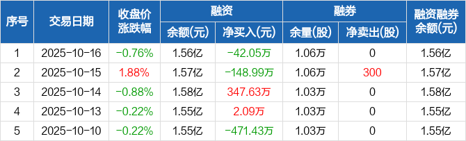 复旦张江:融资净偿还42.05万元,融资余额1.56亿元(10-16)