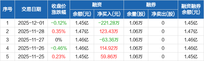 复旦张江:融资净偿还221.28万元,融资余额1.45亿元(12-01)