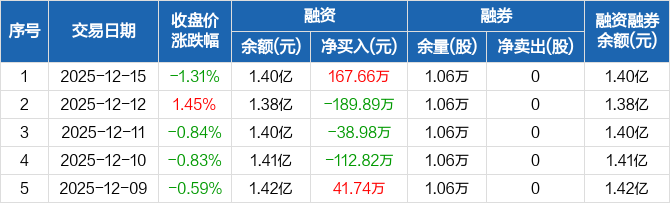 复旦张江:融资净买入167.66万元,融资余额1.4亿元(12-15)
