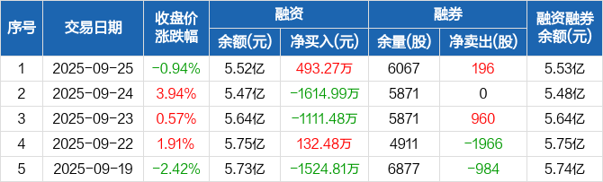 芯朋微:融资净买入493.27万元,融资余额5.52亿元(09-25)