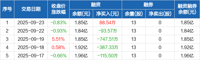 航亚科技:融资净买入88.54万元,融资余额1.85亿元(09-23)