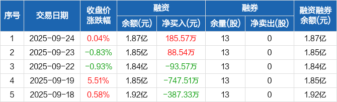 航亚科技:融资净买入185.57万元,融资余额1.87亿元(09-24)