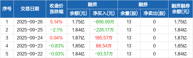 航亚科技:融资净偿还896.99万元,融资余额1.75亿元(09-26)