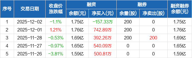 航亚科技:融资净偿还157.33万元,融资余额1.75亿元(12-02)