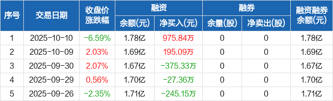 慧智微:融资净买入975.84万元,融资余额1.78亿元(10-10)