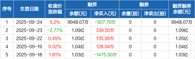 苑东生物:融资净偿还927.79万元,融资余额9948.07万元(09-24)