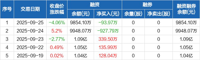 苑东生物:融资净偿还93.97万元,融资余额9854.1万元(09-25)