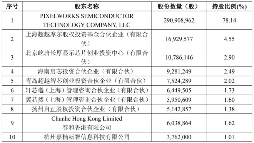 据公告,目前逐点半导体共有14名股东,芯原股份持有逐点半导体股份1.01%,Pixelworks 持股78.14%。