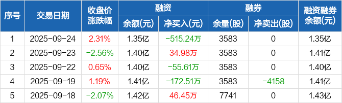 航天环宇:融资净偿还515.24万元,融资余额1.35亿元(09-24)