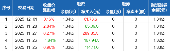 豪森智能:融资净买入61.73万元,融资余额1.34亿元(12-01)