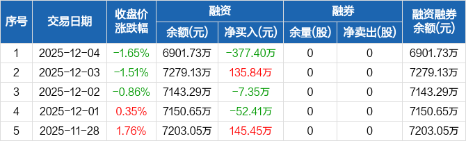欧莱新材:融资净偿还377.4万元,融资余额6901.73万元(12-04)