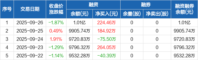 上声电子:融资净买入224.46万元,融资余额1.01亿元(09-26)