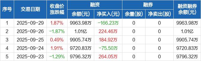 上声电子:融资净偿还166.23万元,融资余额9963.98万元(09-29)