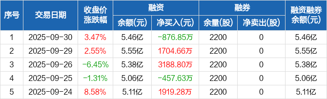 华海诚科:融资净偿还876.85万元,融资余额5.46亿元(09-30)