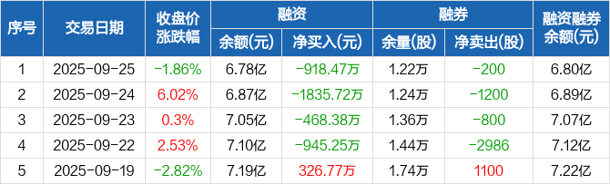 思瑞浦:连续4日融资净偿还累计4167.81万元(09-25)