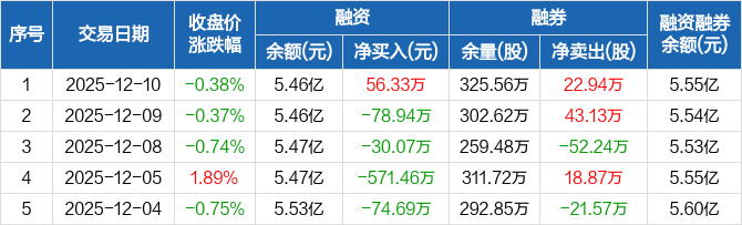 和辉光电:融资净买入56.33万元,融资余额5.46亿元(12-10)