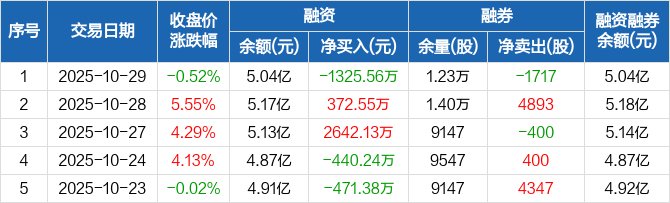 国科军工融资融券信息显示,2025年10月29日融资净偿还1325.56万元;融资余额5.04亿元,较前一日下降2.56%。