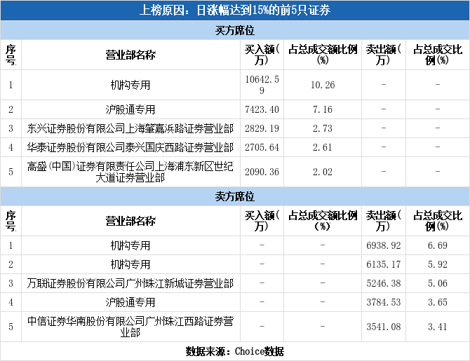 上交所2026年1月7日交易公开信息显示,广钢气体因属于日涨幅达到15%的前5只证券而登上龙虎榜。广钢气体当日报收18.12元,涨跌幅为20.00%,换手率8.69%,振幅20.00%,成交额10.37亿元。