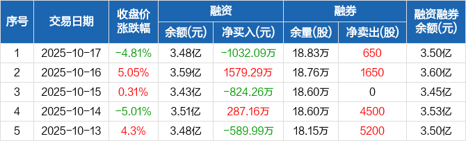 中巨芯:融资净偿还1032.09万元,融资余额3.48亿元(10-17)