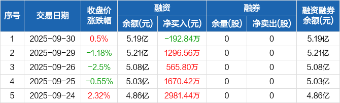 瑞联新材:融资净偿还192.84万元,融资余额5.19亿元(09-30)