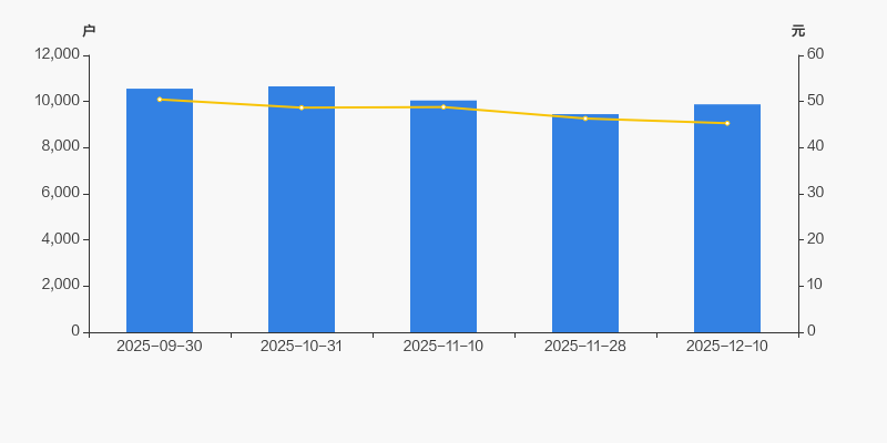 2025年9月30日至今,公司股东户数有所下降,区间跌幅为6.43%。2025年9月30日至2025年12月10日区间股价下降10.21%。