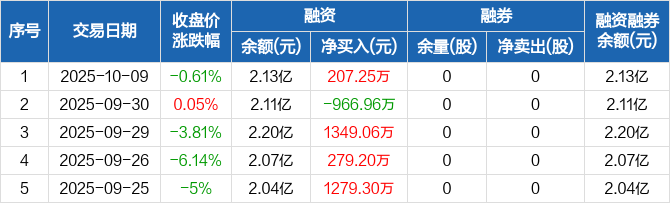 汇宇制药:融资净买入207.25万元,融资余额2.13亿元(10-09)